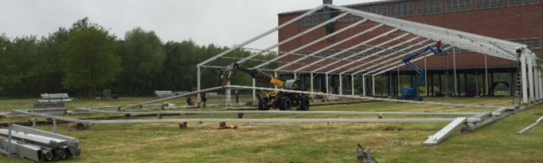 … et à l’abri des regards, se monte les chapiteaux qui vont accueillir dans quelques jours le salon Made in Hainaut, soit plus de 4 000 m2 d’exposition.